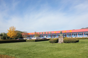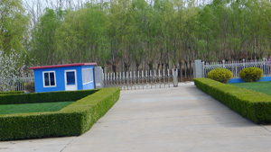 绕过树木丛生的小路,穿越草木丰茂的山脚,跨越辽阔空旷的大平原,我们终于来到了北京顺鑫农业茶棚原种猪场。茶棚种猪场像一个充满活力的婴儿,在周围青山的怀抱中憧憬着未来。来这里的人不得不被这里如画的风景陶醉,突然觉到孟浩然的“绿树村边河,青山郭外斜”诗的意境真实的出现在眼前。用花园般的办公小区来形容这里的风景显然不够分量,场大门正对着一大片整齐的树林,瑟瑟的风声为茶棚的员工提供一曲美妙的音乐。办公区前面的草本植物被修剪的整整齐齐,在空地上,各种果树亭亭玉立,樱桃树、桃树、柿子树等被精心安排在空地上,不仅能够为场内增添生机,而且可以为这里的员工或者远道而来的朋友提供香甜的水果,这里的风景从东南西北或者360度,每一个角度都是一幅精美的画,好环境养出好的种猪,来这里引好的种猪,感受世外桃源生活。