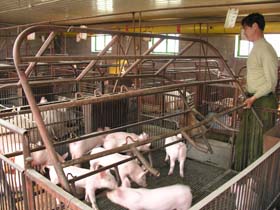 1.本场采用全新的三阶段养猪工艺,即把原来的产仔与保育阶段合二为一,便于生产管理,减少仔猪应激。